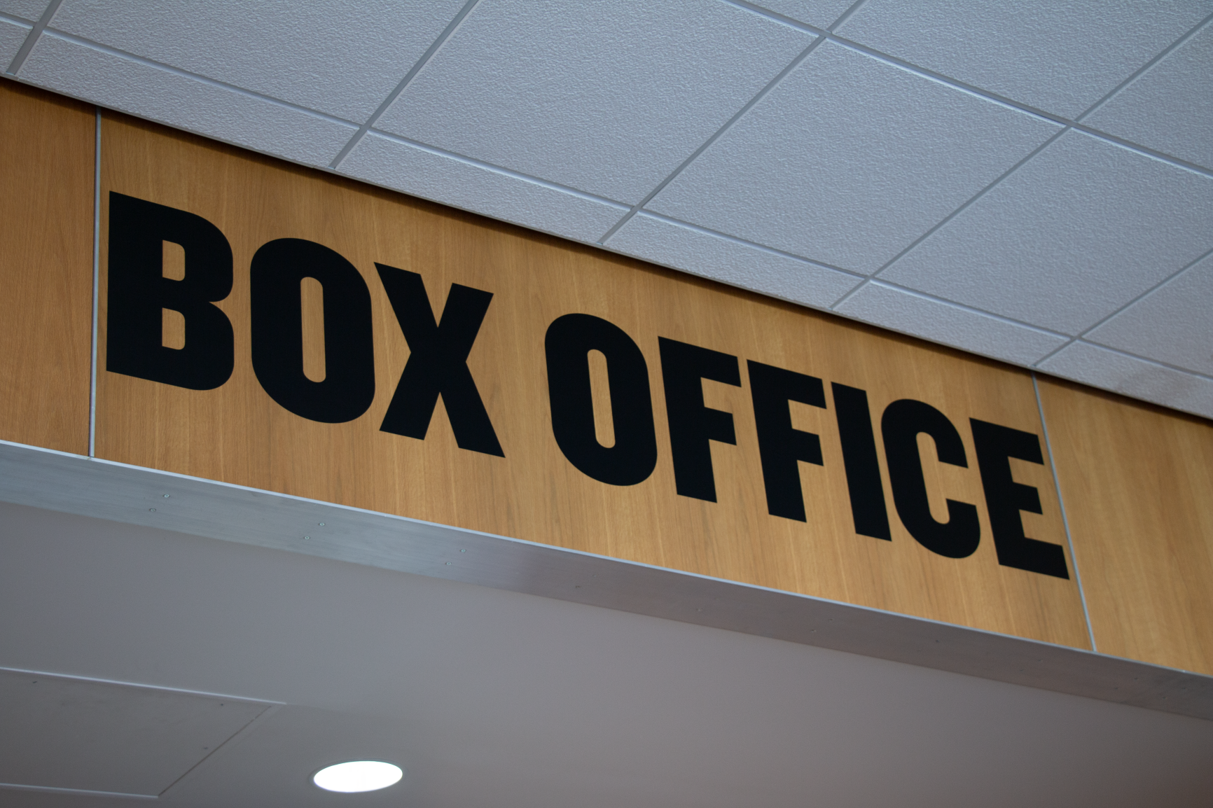 approach: For this job, the client had provided many quotes for us to accompany with illustrations of high-contrast portraits. They also requested that we design wayfinding signage to help those unfamiliar with the building find their way to areas commonly asked for. I was responsible for the box office signage and the two full-panel illustrations on the doors to the Mainstage theatre and the Lab theatre (shown below). My other team members were responsible for the other signage, the quotes, and the portrait illustrations, although I did assist in installing all the vinyl over the course of a few weeks.